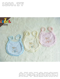 您所在位置:首頁>杭州樂貝兒嬰童用品有限公司>樂貝兒小熊花邊圍嘴