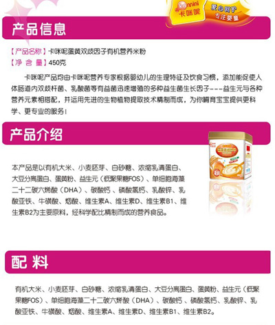 卡咪呢金胚麥芽蛋黃雙歧因子有機(jī)營(yíng)養(yǎng)米粉