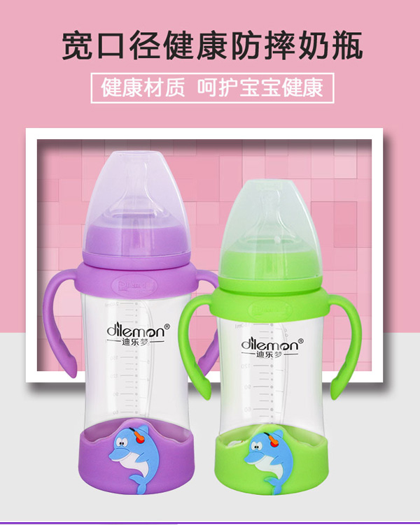 迪樂(lè)夢(mèng)寬口徑健康防摔海豚奶瓶
