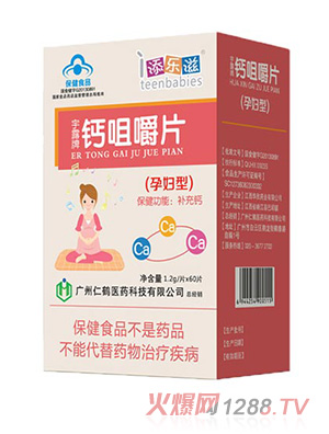 添樂滋孕婦型鈣咀嚼片,根據(jù)孕產(chǎn)婦人群鈣需求研制,采用碳酸鈣為原料,鈣含量高,安全補(bǔ)鈣好吸收;特別添加酪蛋白磷酸肽,科學(xué)配比,助力鈣吸收;科學(xué)添加甜菊糖苷,擁有國(guó)家食品藥品監(jiān)督管理局批準(zhǔn)認(rèn)證的藍(lán)帽子,特別+科學(xué)添加,安全補(bǔ)鈣!