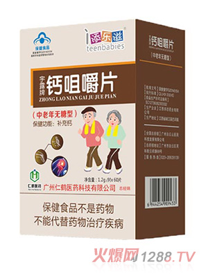 添樂滋中老年鈣咀嚼片,根據(jù)中老年人群鈣需求研制,采用碳酸鈣為原料,鈣含量高,安全補(bǔ)鈣好吸收;特別添加酪蛋白磷酸肽,科學(xué)配比,助力鈣吸收;科學(xué)添加甜菊糖苷,更懂呵護(hù)中老年人健康。