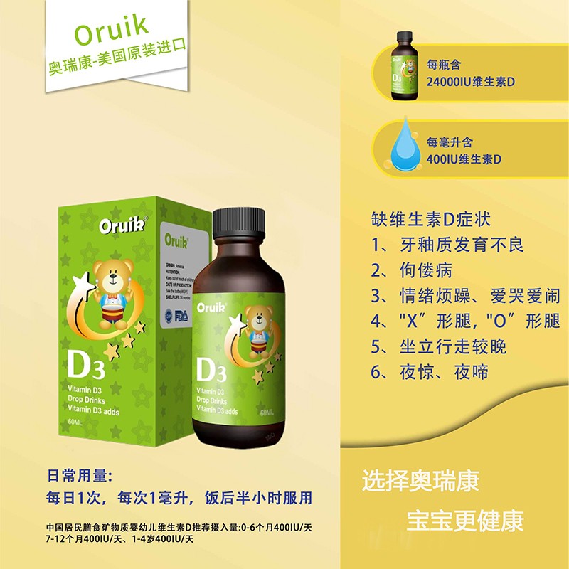 您所在位置:首頁>深圳市奧瑞康生物科技有限公司>奧瑞康維生素D3滴劑