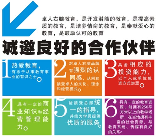 卓人創(chuàng)建于2004年,是一家專業(yè)從事早教及右腦潛能教育的教育機構(gòu),其右腦潛能的研究成果、右腦潛能課程、教具學具及所創(chuàng)辦的早教、潛能培訓學校享譽國內(nèi)外。