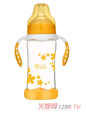 向太陽防摔玻璃奶瓶雙手柄花瓣圖案黃色產品展示