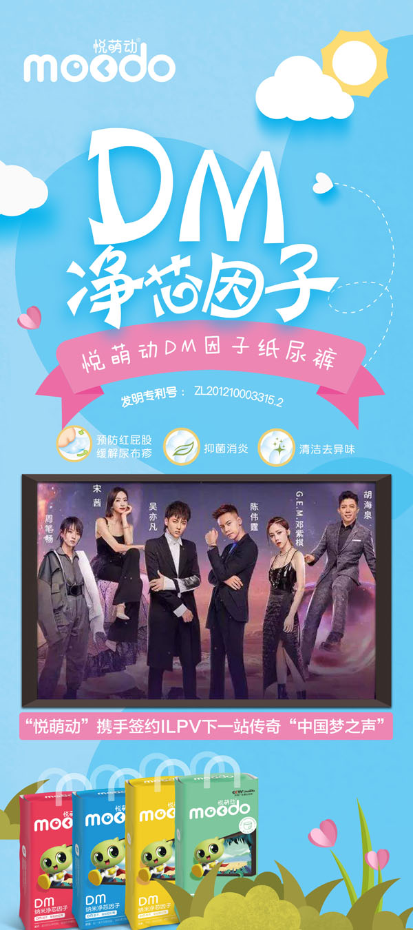 悅萌動品牌,產(chǎn)品涵蓋紙尿褲、悅動褲系列,輕薄防漏,羽柔舒適,DM因子芯體,獨具特色。DM因子(diatom)是一種具有分子篩結(jié)構(gòu)的材料,該種結(jié)構(gòu):具有極強的物理吸附和離子轉(zhuǎn)換性能!能有效的吸附尿尿所產(chǎn)生的異味、能夠預(yù)防紅屁股。