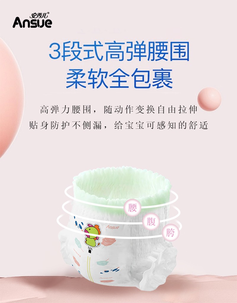 繽紛盛宴嬰兒紙尿褲/拉拉褲,云般柔軟,專為嬰兒肌,多彩設(shè)計(jì)+6代芯體,守護(hù)寶寶每一步。1片瞬吸,8次尿量。瞬吸高分子,一夜一片睡香香;3D表層+智選優(yōu)材,筑牢“屁屁防護(hù)盾”;3D雙層柔點(diǎn)觸感,拒絕潮濕,時(shí)刻干爽親膚;多重品質(zhì)檢驗(yàn),嚴(yán)選優(yōu)材,安全體驗(yàn)有保障;3段式高彈腰圍,柔軟全包裹,隨動(dòng)作變換自由拉伸,貼身防護(hù)不側(cè)漏,給寶寶可感知的舒適;萃取橄欖油精華,呵護(hù)嬌嫩肌,有效防紅臀。搭配科學(xué)護(hù)理提示,換褲清潔、過(guò)敏應(yīng)對(duì)全涵蓋。選安秀兒,給寶寶“臀”級(jí)寵愛~