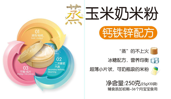 蒸汽滾筒干燥法:通過蒸汽滾筒工藝,鎖住米香和營(yíng)養(yǎng),減少了寶寶上火現(xiàn)象;