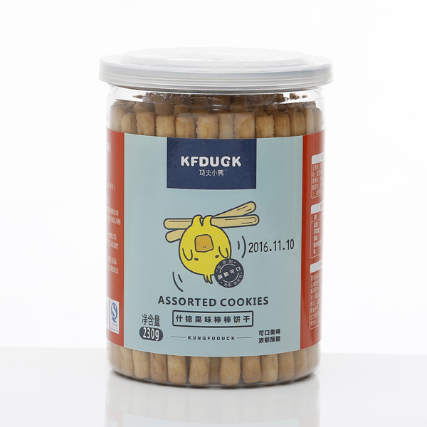 功夫小鴨牛奶什錦水果蔬菜香蕉牛奶多種口味棒棒餅干產(chǎn)品展示