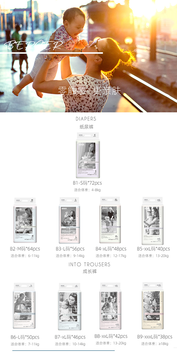 BERGER,專業(yè)嬰兒紙尿褲品牌,深耕該領(lǐng)域多年,極具市場口碑,產(chǎn)品深得終端市場認(rèn)可!火爆嬰童網(wǎng)極力為各位寶媽推薦這款BERGER嬰兒零觸感低敏紙尿褲!以至臻品質(zhì)熱賣終端,上市以來快速“走紅”市場,備受好評!